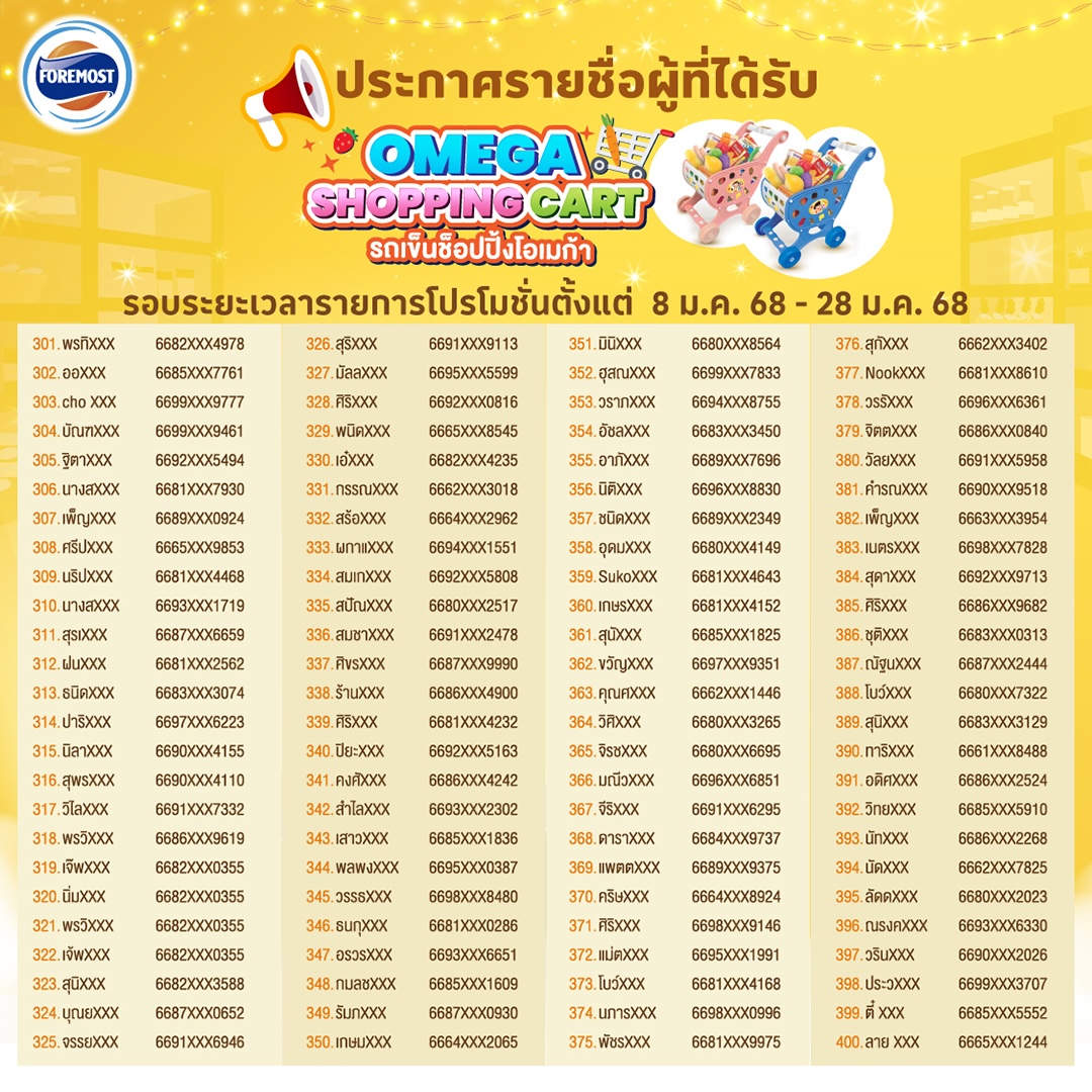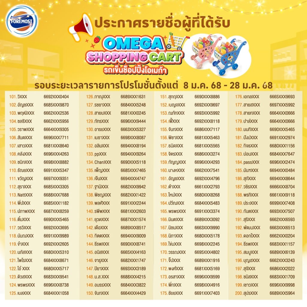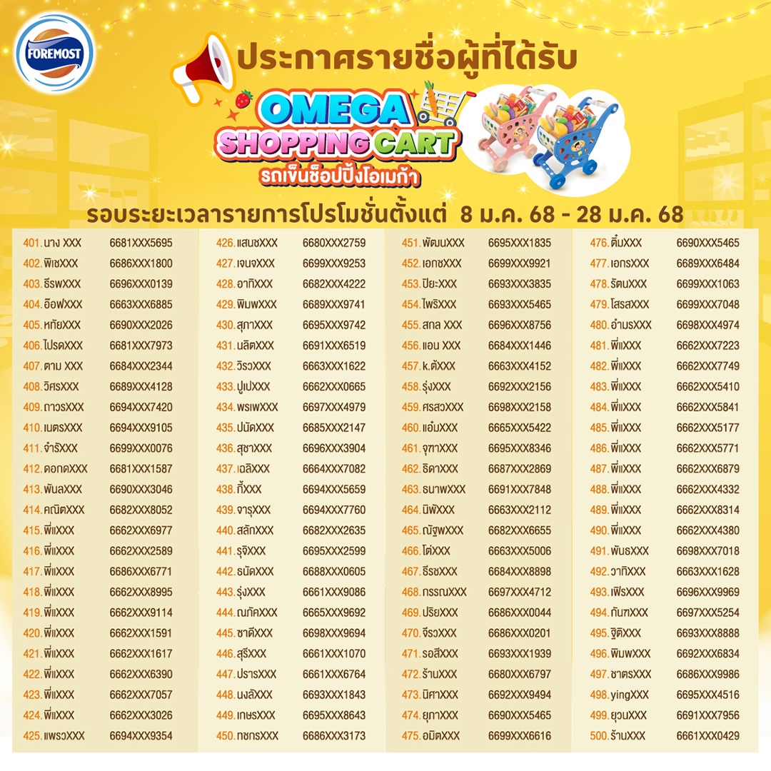 ประกาศรายชื่อผู้โชคดีจากแคมเปญ “โปรเด็ด โฟร์โมสต์ ลดทุกวัน คุ้มหลายต่อ” ขอบคุณทุกคนที่ร่วมสนุก แล้วมาลุ้นกันใหม่ในกิจกรรมครั้งต่อไป!
