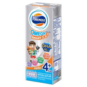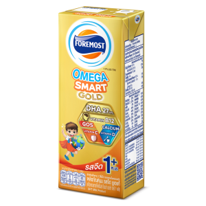 โฟร์โมสต์ โอเมก้า สมาร์ท โกลด์ 4 พลัส เป็น นมกล่องพร้อมดื่ม สำหรับเด็กวัย 3 ปีขึ้นไป ที่มี โอเมก้า 3, DHA, และสารอาหารอื่นๆ เพื่อช่วยเสริมพัฒนาการสมอง, การเรียนรู้, และภูมิคุ้มกันของเด็ก พร้อมทั้งช่วยเสริมสร้างร่างกายให้แข็งแรง