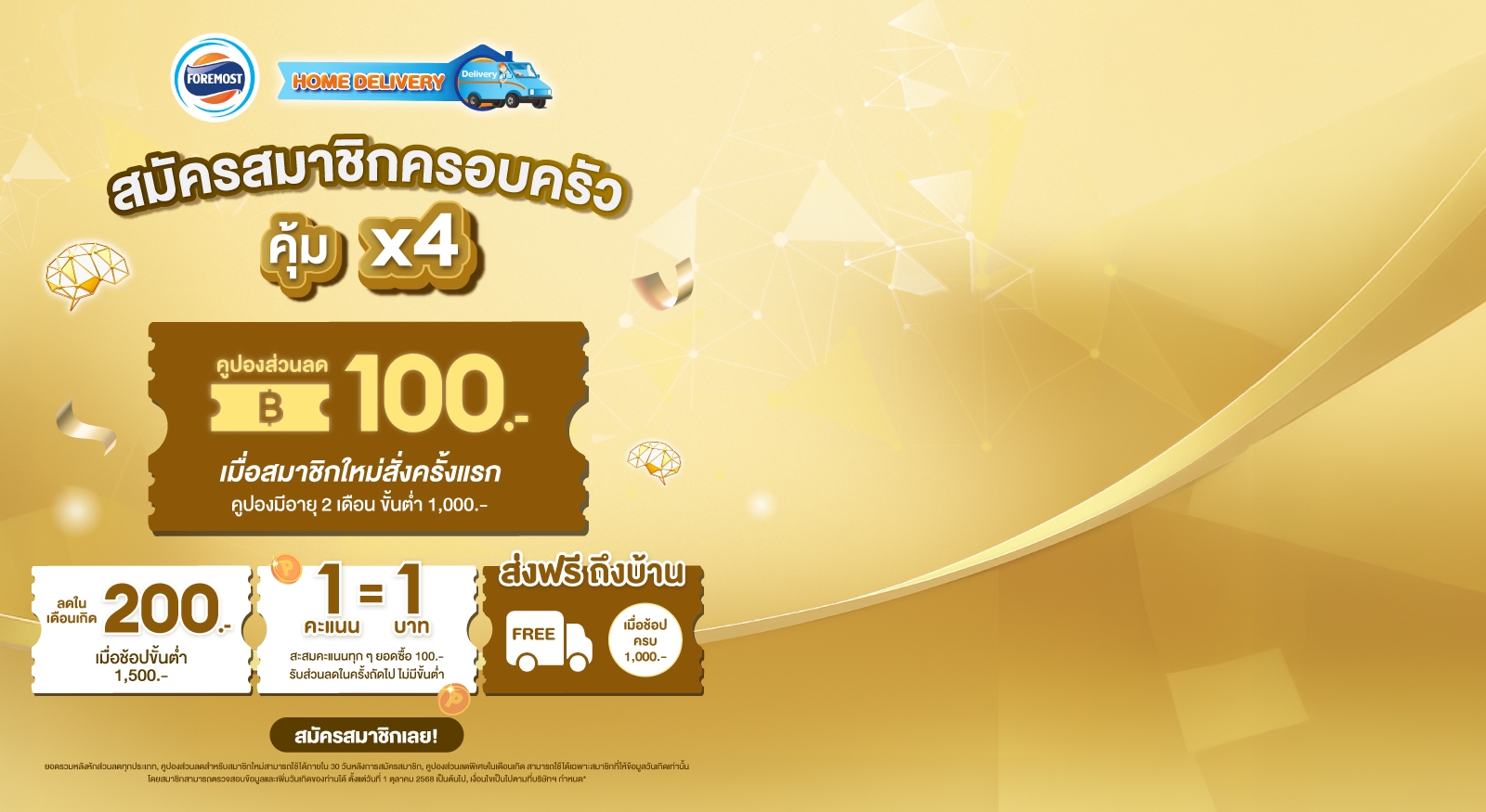 การคลิกที่ปุ่มลงทะเบียน ถือว่าคุณได้ยอมรับ เงื่อนไขการใช้งานและนโยบายความเป็นส่วนตัว เพื่อใช้ในการนำเสนอสินค้า บริการและสิทธิพิเศษที่เหมาะกับคุณ